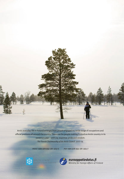 Arctic everyday life in Finland emerges from people engaged in a wide range of occupations and official positions all around the country. These are the people making Finland an Arctic country in its centenary year - with joy, expertise, pride and wisdom. The Finnish Chairmanship of the Arctic Council:2017-19.