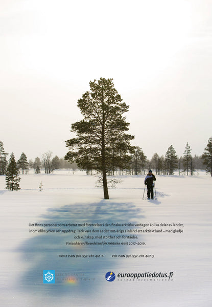 Det finns personer som arbetar med företeelser i den finska arktiska vardagen i olika delar av landet, inom olika yrken och uppdrag. Tack vare dem är det 100-åriga Finland ett arktiskt land -  med glädje och kunskap, med stolthet och förståelse. Finland är ordförandeland för Arktiska rådet 2017-2019.